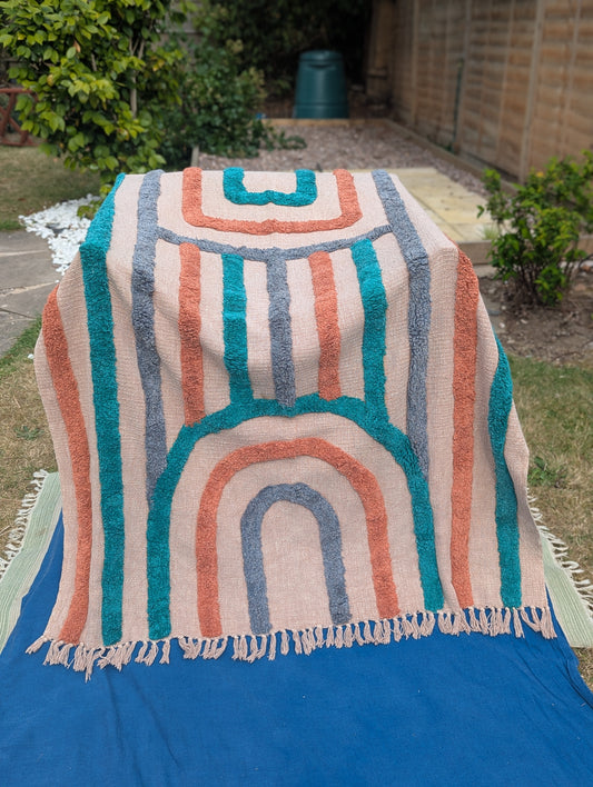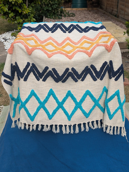 Slub Cotton Tufted Throw - Blue Orange