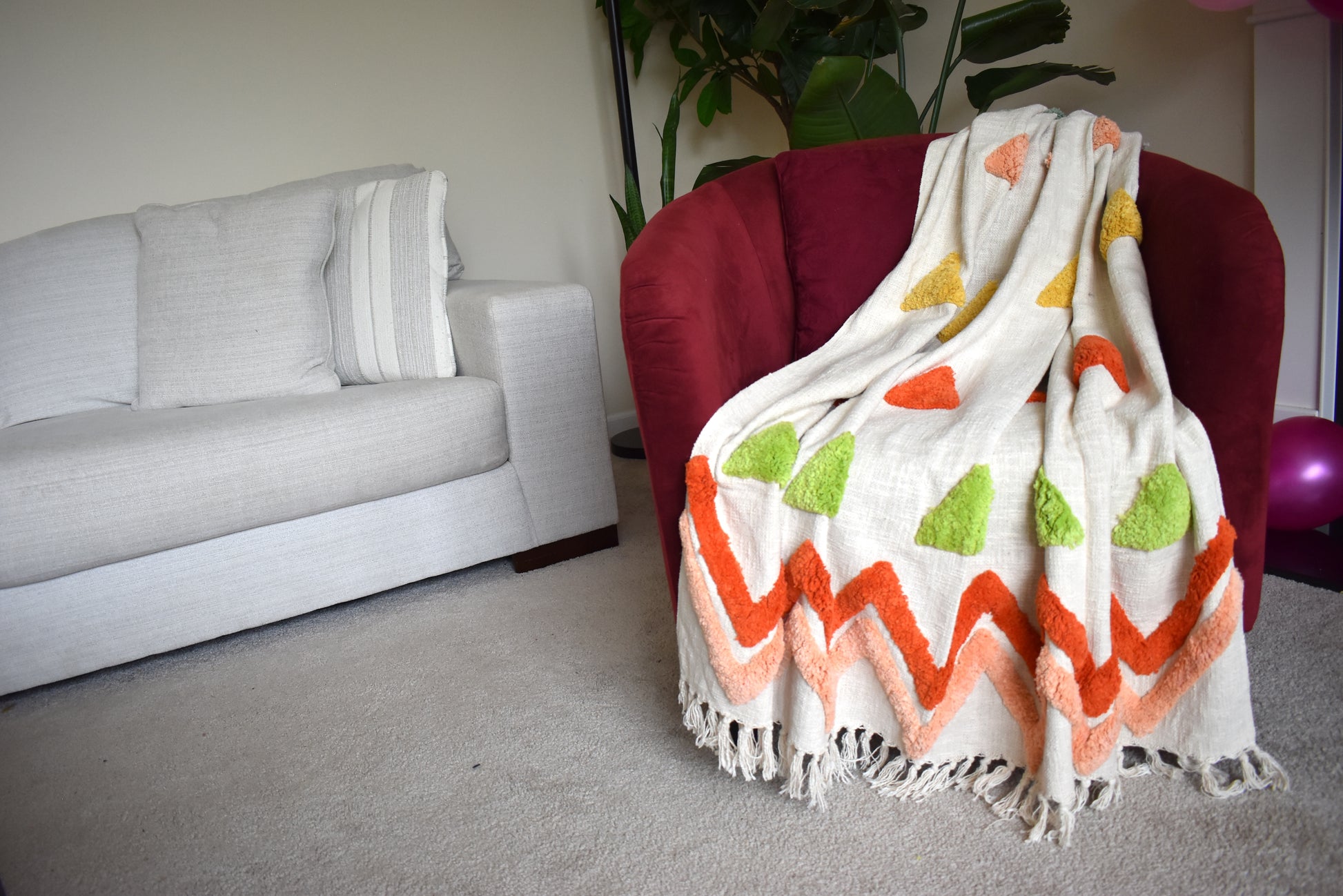 Product Description: Tufted Throw with Slub coloured lines. A mix of contemporary and traditional artistic cover for your sofa, bed or a chair made. A perfect companion to your home adding the panache to a cozy corner.