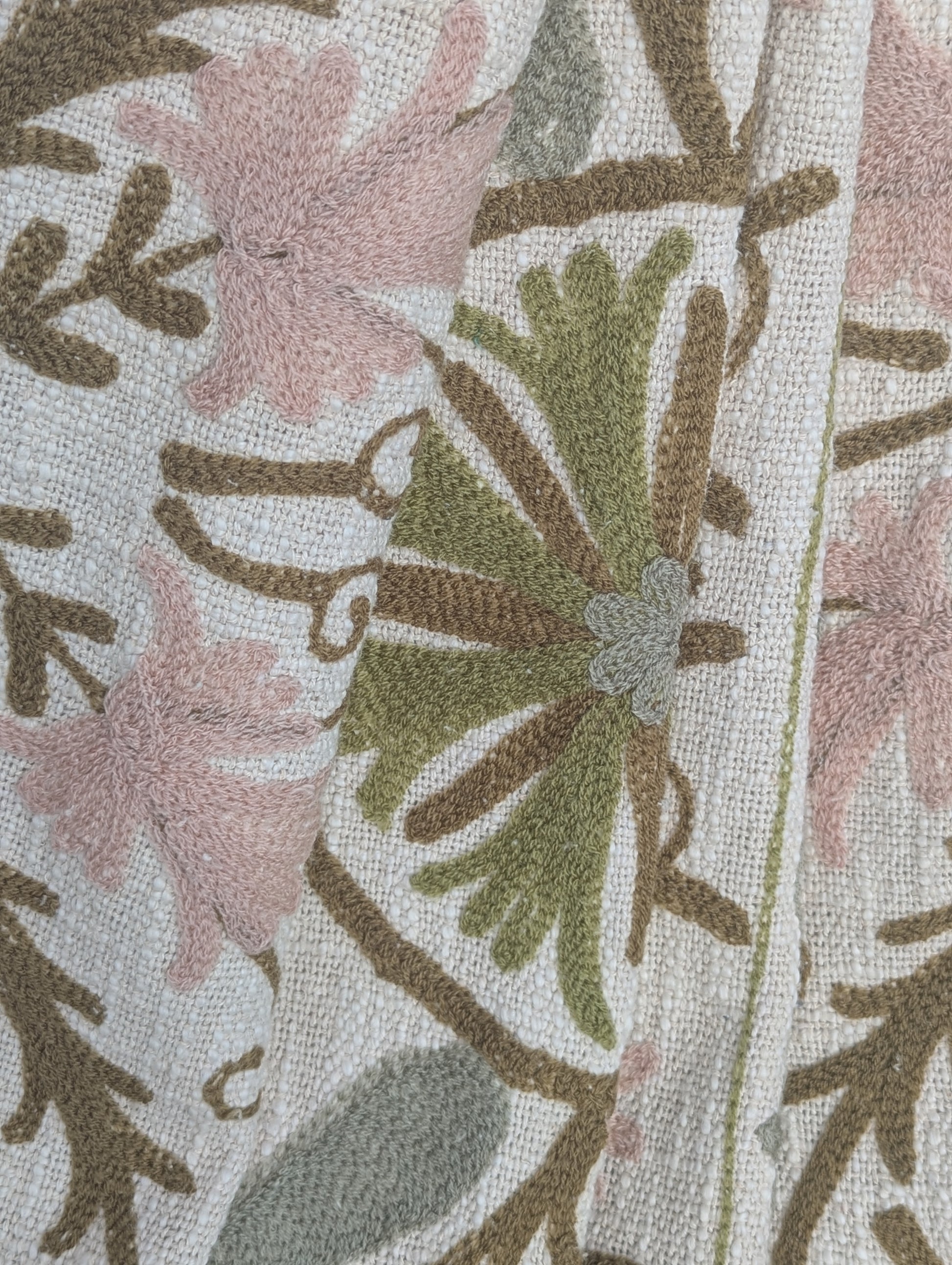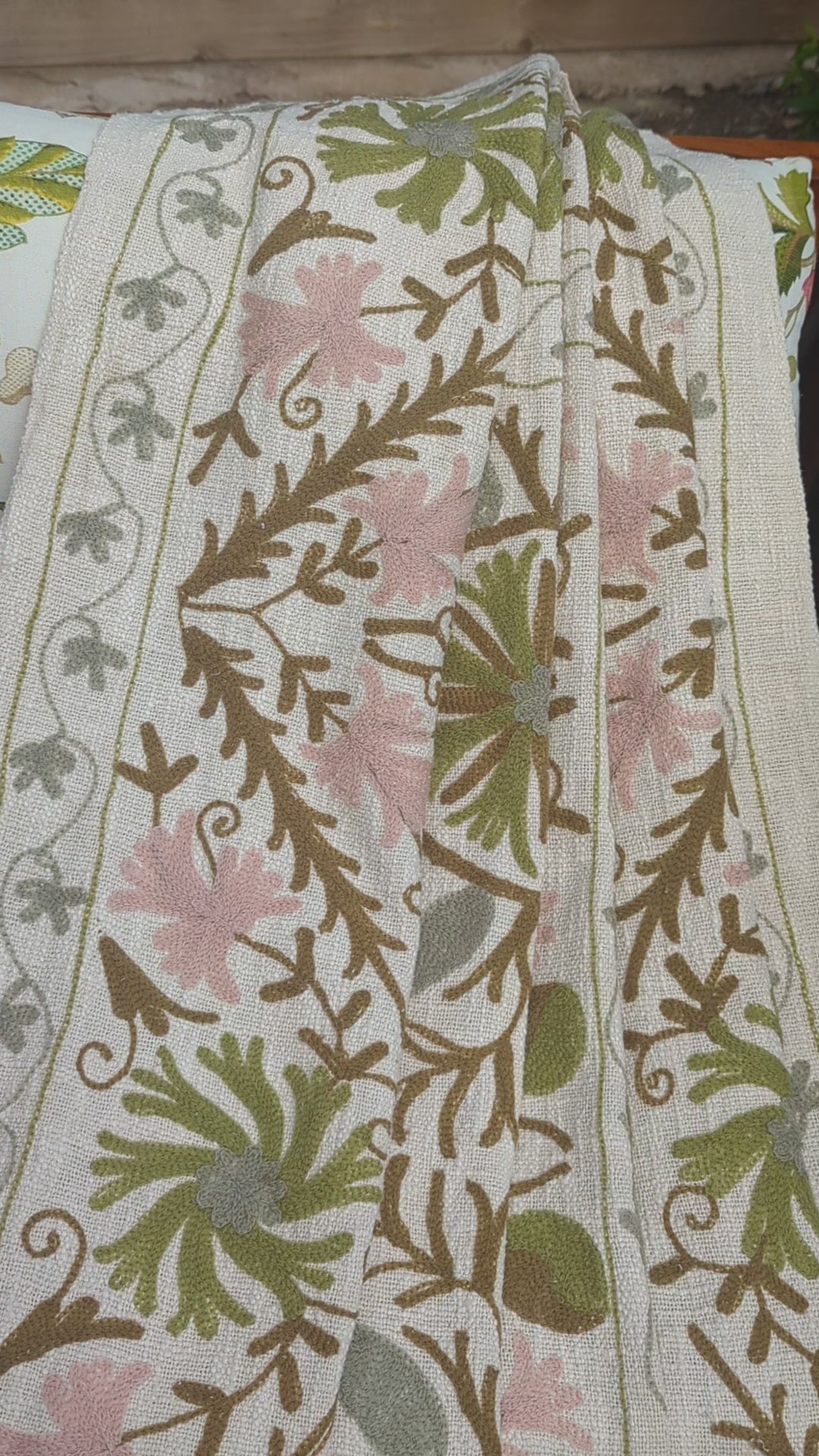 Product Description: Slub Cotton Throw with with beautiful embroidery. A mix of contemporary and traditional artistic cover for your sofa, bed or a chair made on a slub cotton fabric with contemporary embroidery. A perfect companion to your home adding the panache to a cozy corner.